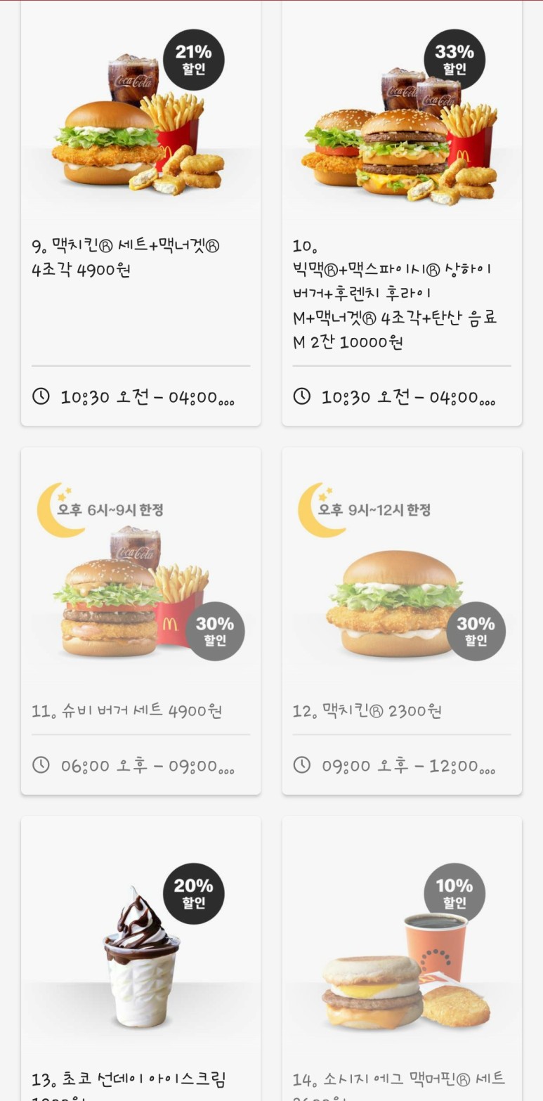 심지어 빅맥+맥스파이시상하이버거+후렌치후라이+맥너겟4조각+탄산음료2잔이 만원 밖에 안하더라구요.