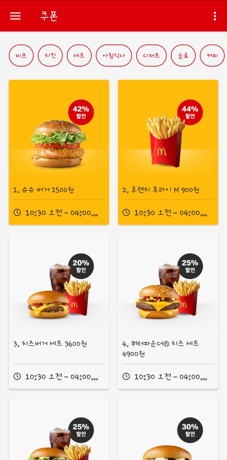 맥도날드어플로 쿠폰을 사용하시면서 저렴하게 한 번드셔보세요~!